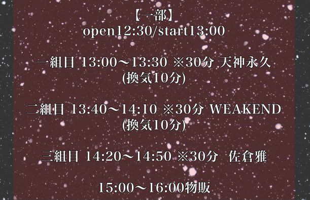 出演者 佐倉雅 WEAKEND 天神永久 OPEN 12:30 / START 13:00 ¥2500