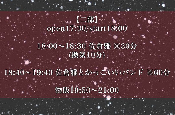 出演者 佐倉雅 佐倉雅とかっこいいバンド OPEN 17:30 / START 18:00 ¥2000