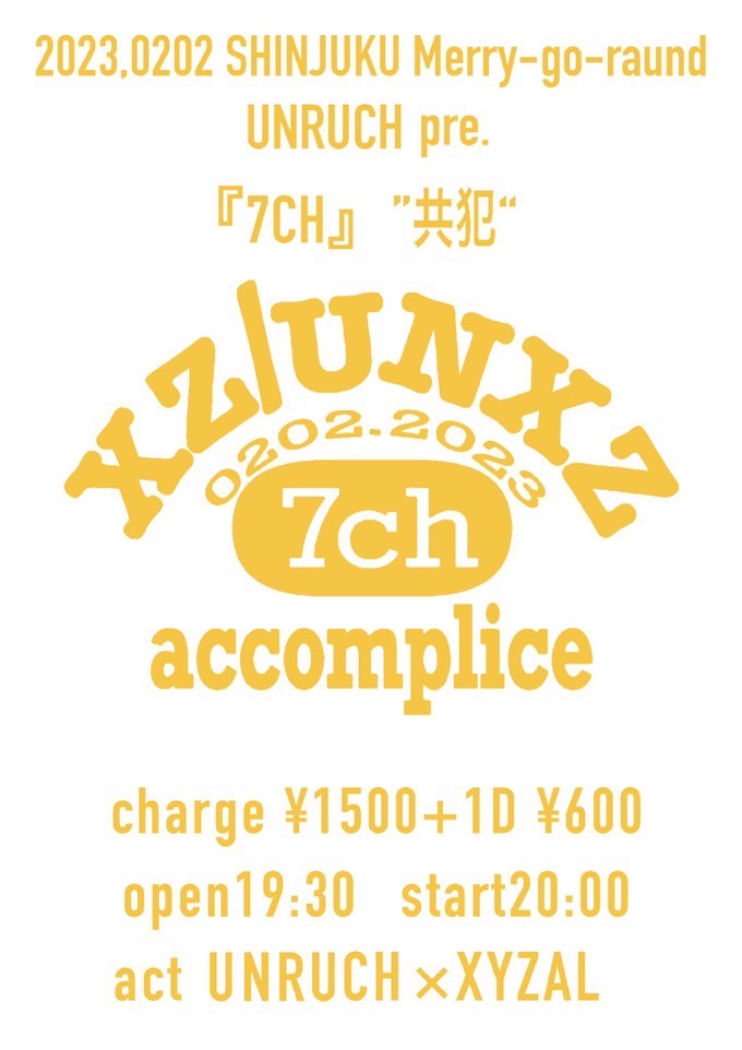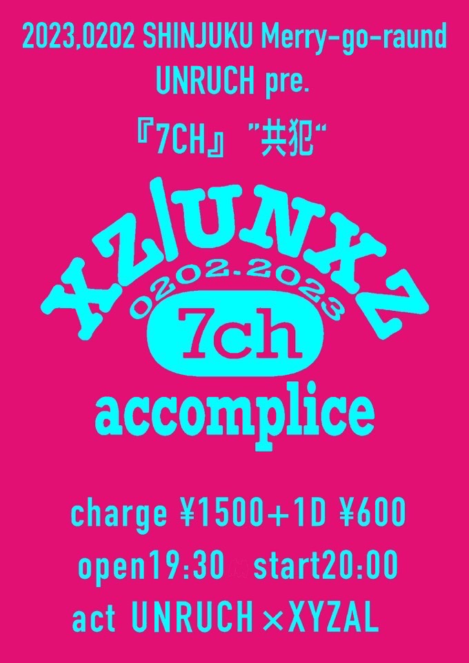 出演者 UNRUCH XYZAL OPEN 19:30 / START 20:00 Ticket ¥1,500