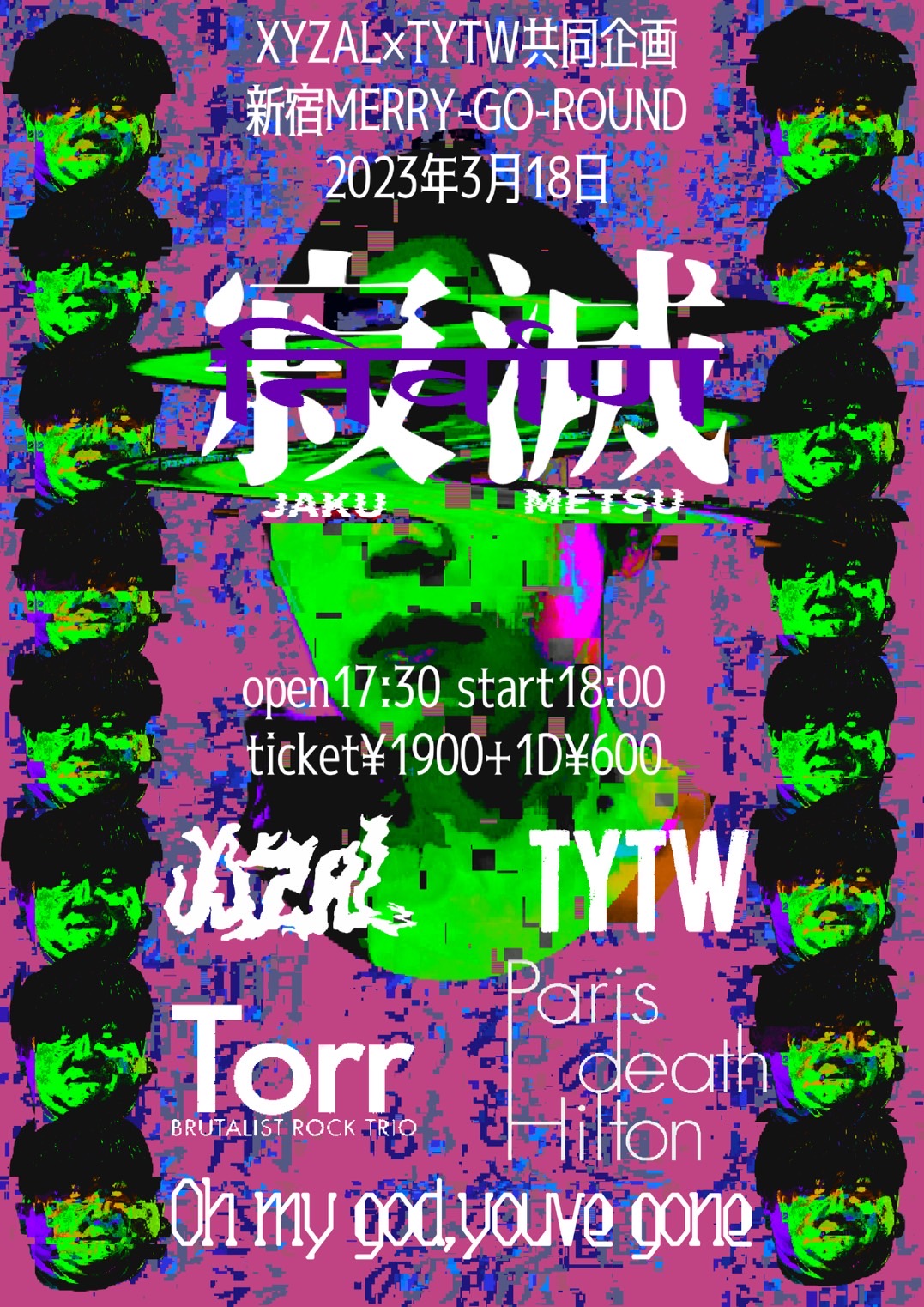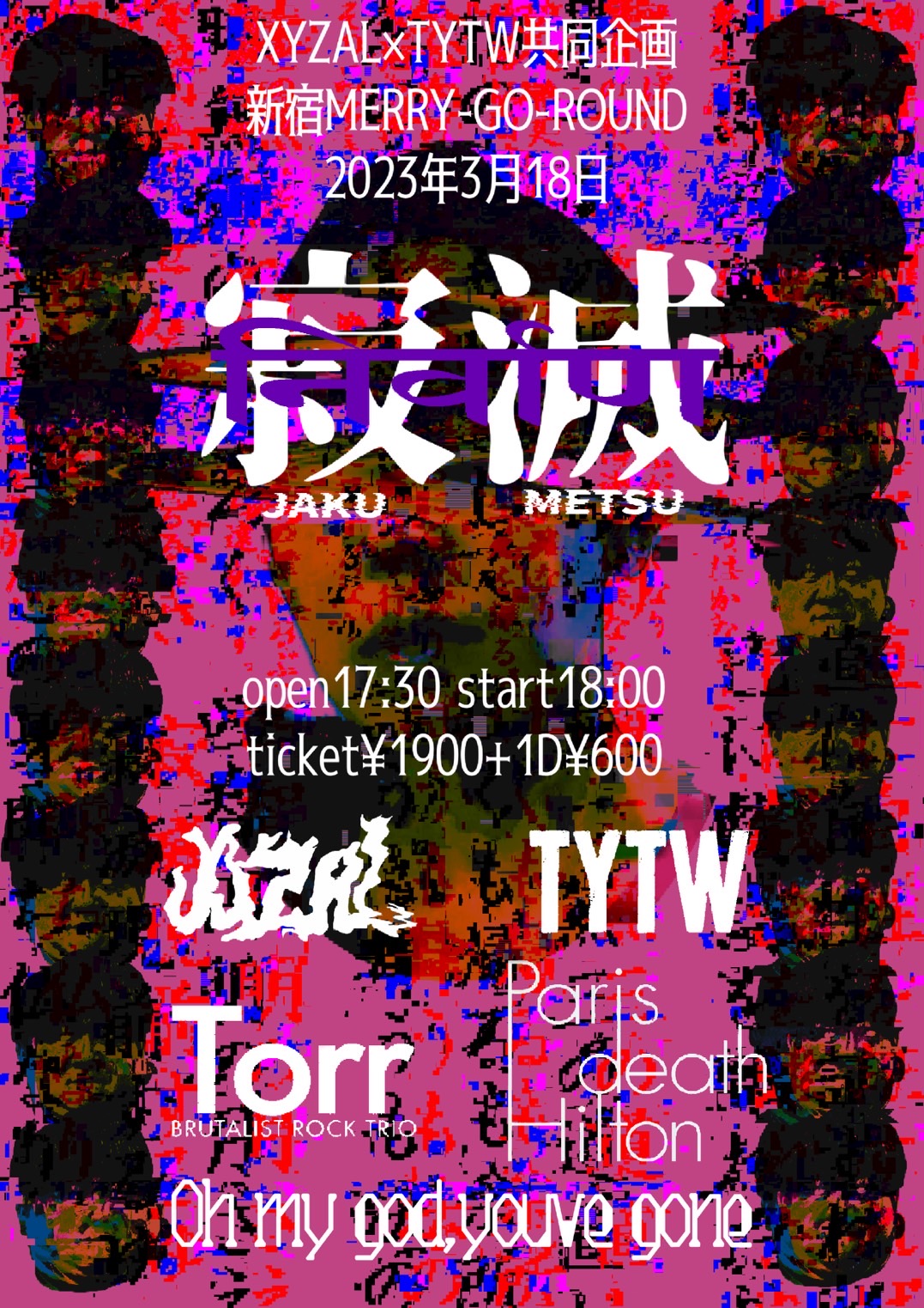 出演者 XYZAL TYTW Torr Paris death Hilton Oh my god,youve gone OPEN 17:30 / START 18:00 ¥1900